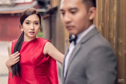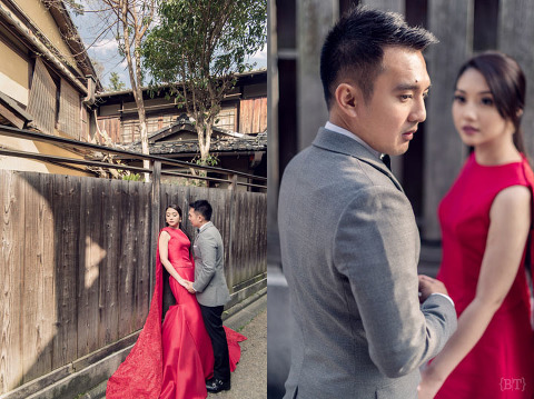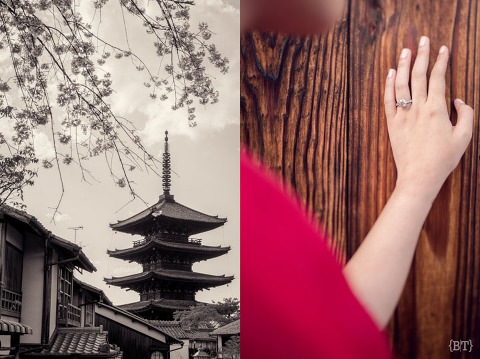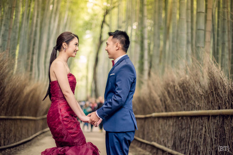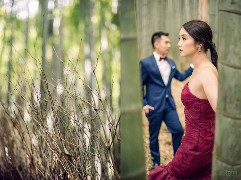 Opportunity is a gift to the lucky and the persistent ones—for Yan and Joanna’s two day engagement shoot, one of the sites that we visited was the Arashiyama Bamboo Forest. It was packed with tourists and we almost lost hope on taking a proper set of photos there. We waited and walked further until we saw a shack. I was curious so I snooped around and there it was, a hidden opening at the back that led to the forest! Next thing we knew, we found ourselves surrounded by these towering giants. so shoot we did to our hearts’ delight. Well, it’s something that not everyone can find so we decided to spend a bit more time here.