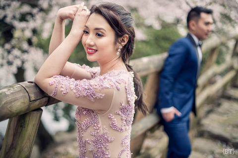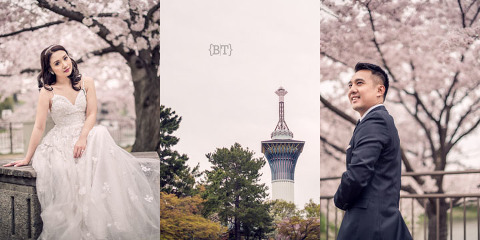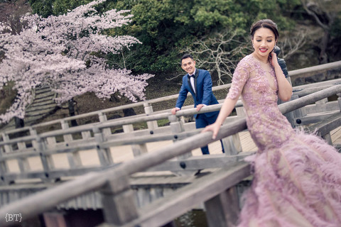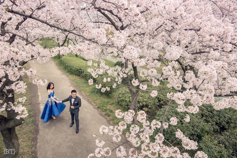 For Osaka, we discovered locations that were a stark contrast of Kyoto. Yan mentioned these parks and surprisingly, there were no tourists around. The romantic mood was even more amplified by a sea of cherry trees with their perfect pink blooms. The Japanese say that these trees symbolize new beginnings—and I say that this is also what an engagement shoot means to me as a photographer.