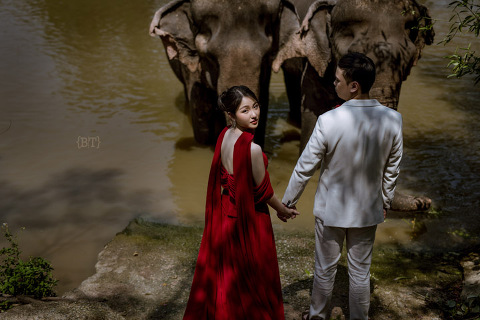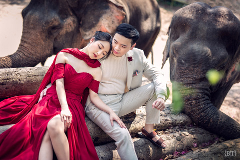 For this set with Jarvis and Geline, we traveled before sunrise for a day in the city of Pattaya. Our first stop was an elephant sanctuary where we worked with these gentle giants. It was my first encounter with these magnificent creatures, and I must admit, words hardly do justice to the awe-inspiring moment.