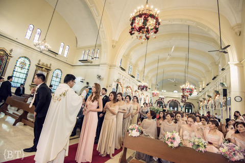 Where do we even begin? All wedding suppliers, check. Ceremony setup, complete. The wedding gown? Of course, it was perfect. Hair and makeup ready, guests begin to arrive, Sean waiting eagerly by the altar, and suddenly, doors were closed and the choir began to play U2’s “All I Want Is You”. All eyes were glued to the door and as it opened, a vision in white slowly emerged. The bride… we’re sure everyone can agree with us when we say Karel was unequivocally stunning, and that is not even an exaggeration–and you could say the rest was history.